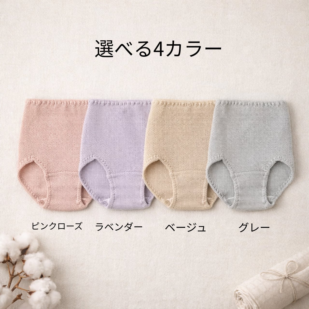 ・色展開: ベージュ、グレー、ラベンダー、ピンクローズ