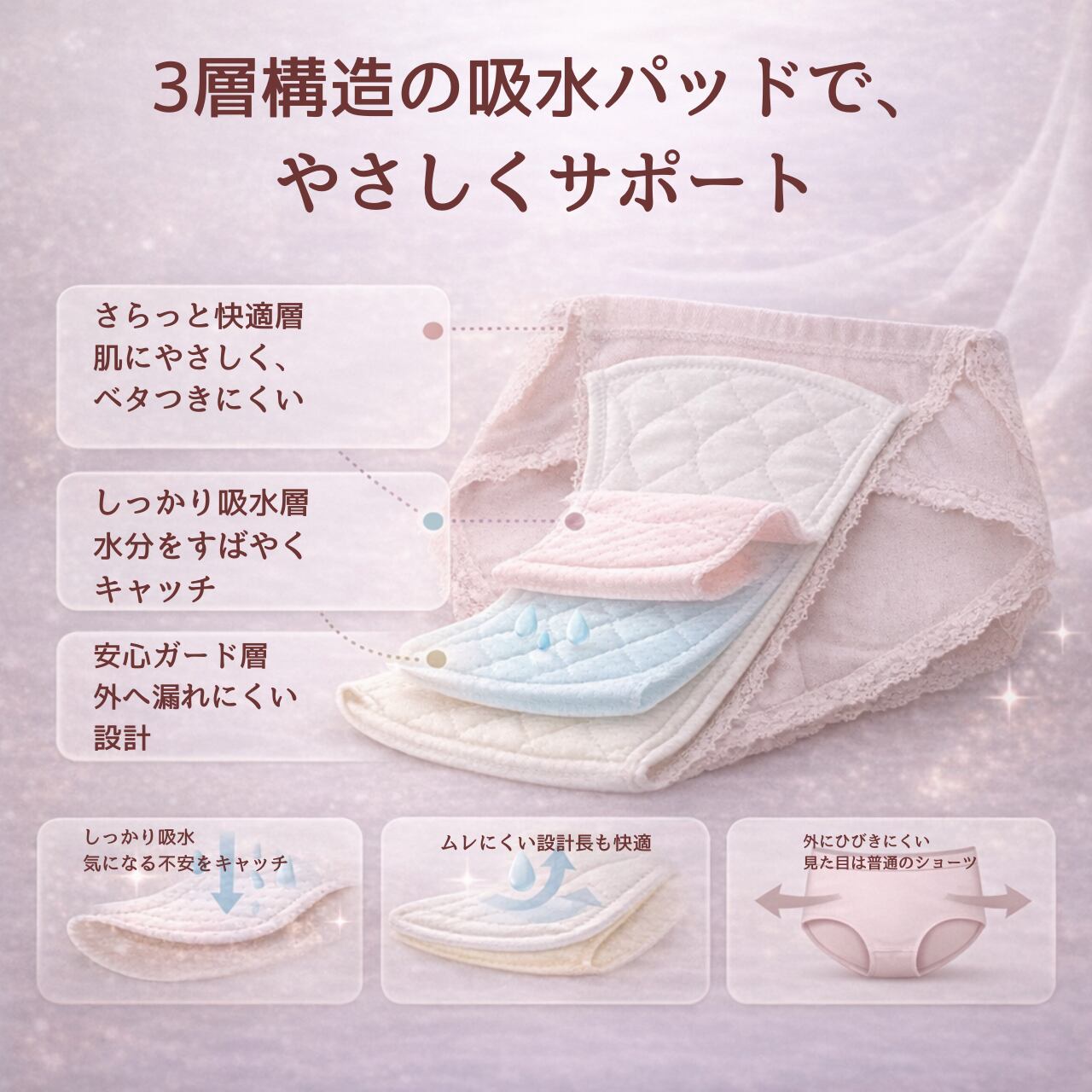 ・吸水性が高い3層構造、優れた吸湿性で快適さを提供