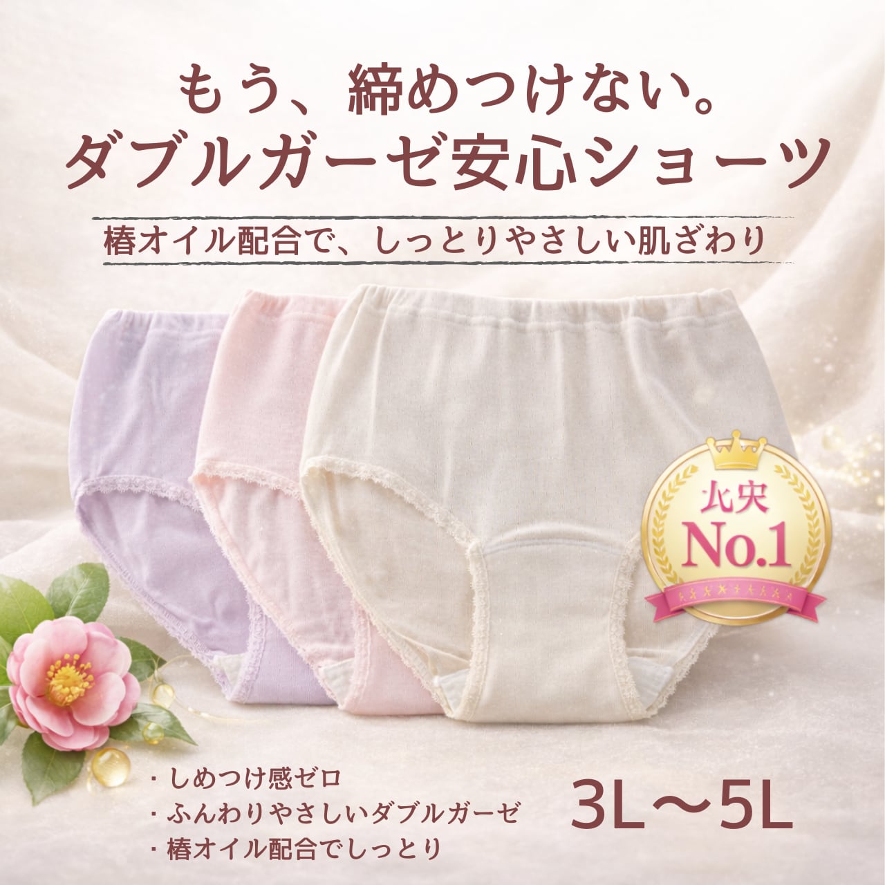 # 椿オイル配合ダブルガーゼ安心ショーツ 3L~5L