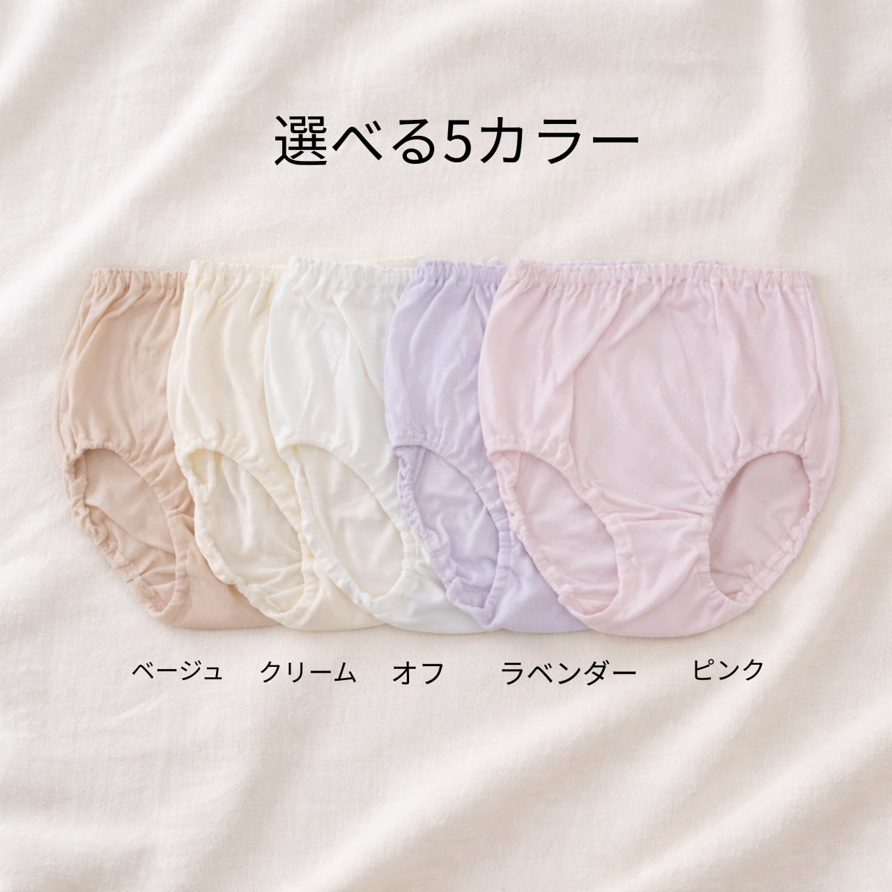 ・色展開: ピンク、ラベンダー、クリーム、ベージュ、オフホワイト
