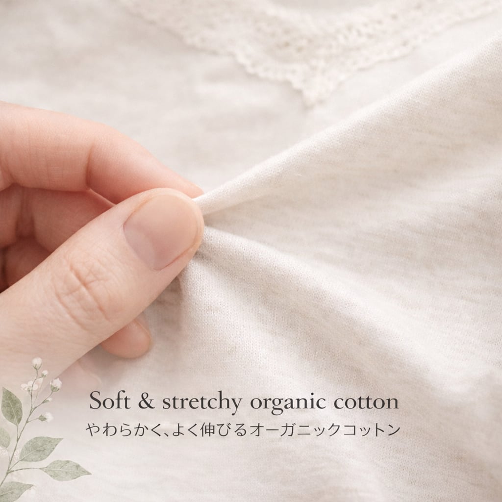 ・オーガニックコットンを使用し、肌触りが柔らかく、リラックスしたフィット感を提供