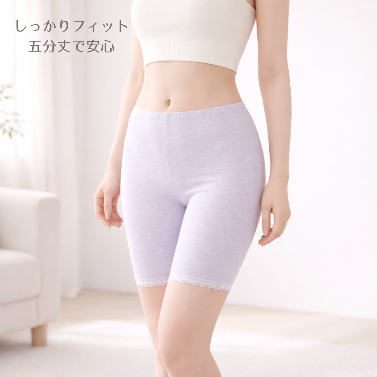 安心感のある五分丈でしっかりカバー。