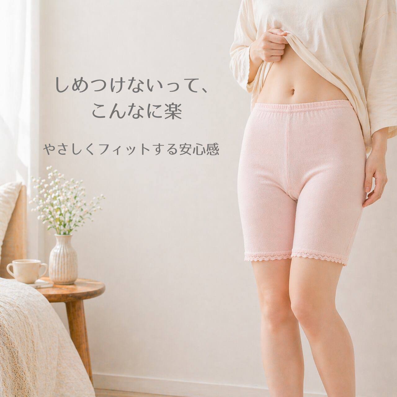 椿オイル配合Wガーゼ五分丈ボトム|やさしくフィット・しめつけないインナー【日本製】